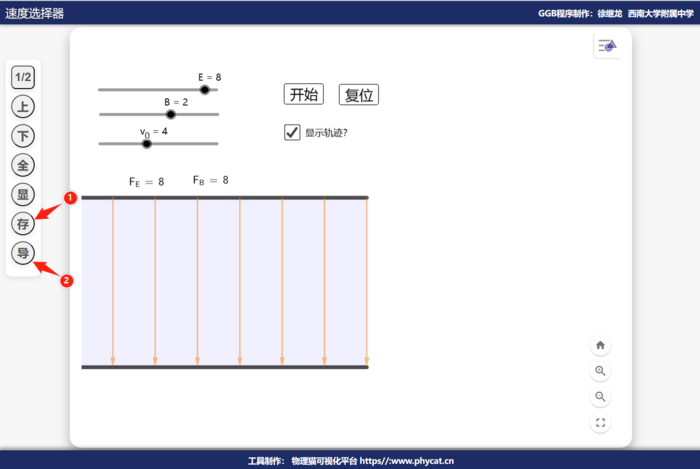 为了保存小程序被操作后的状态,你可以在切换页面之前点击一下这个 存 字,这样当前状态就会被记录,再次切换回该页的时候就就显示之前保存的状态了。利用这种操作可以对小程序的显示做微调。当你调整好所需要的显示效果,点击 导 这个按钮,会重新导出调整好的ggb.js文件,覆盖原来的文件即可。